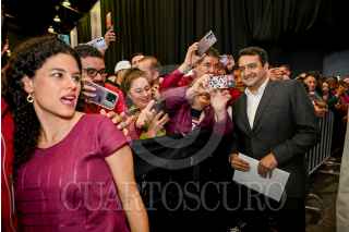 CIUDAD DE MÉXICO. 22SEPTIEMBRE2024.- Luisa María Alcalde Luján y Andrés Manuel López Beltrán, integrantes de la nueva dirigencia de Morena a su llegada al congreso de este partido que se lleva acabo en el WTC. FOTO: JUAN SOTELO/CUARTOSCURO.COM