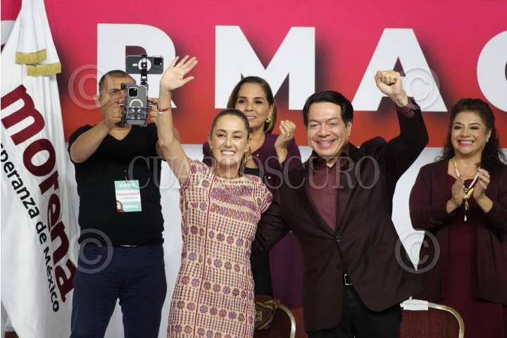 CIUDAD DE MÉXICO, 22SEPTIEMBRE2024.- Claudia Sheinbaum, virtual presidenta electa, y Mario Delgado, presidente Nacional de Morena, durante el Séptimo Congreso Nacional Extraordinario de Morena realizado en el World Tarde Center FOTO: GRACIELA LÓPEZ /CUARTOSCURO.COM