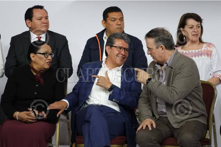 CIUDAD DE MÉXICO, 22SEPTIEMBRE2024.- Rosa Isela Rodríguez,próxima Secretaria de Gobernación; Ricardo Monreal, coordinador de Morena en la Cámara de Diputados, y Marcelo Ebrard, próximo Secretario de Economía, conversaron durante el Séptimo Congreso Nacional Extraordinario de Morena realizado en el World Tarde Center. FOTO: GRACIELA LÓPEZ /CUARTOSCURO.COM