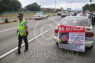 CUERNAVACA, MORELOS, 22SEPTIEMBRE2024.- Familiares y amigos del joven Luis Montoro, realizan un bloqueo en el carril sur-norte del Paso Exprés y en la Paloma de la Paz. Exigen la localización y presentación con vida del joven de 25 años que desaparecio el pasado 13 de septiembre, tras acudir a una tienda realizar compras. Presuntamente fue detenido por elementos de la Guardia Nacional. Su familia exige que la patrulla de la GN que ese día lo detuvo presente su bitácora de actividades, pero hasta el momento no han sido atendidos. FOTO: MARGARITO PÉREZ RETANA/CUARTOSCURO.COM