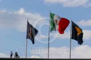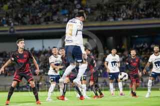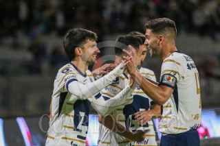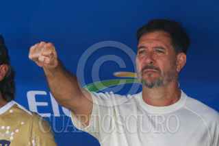 CIUDAD DE MÉXICO, 22SEPTIEMBRE2024.- Gustavo Lema, técnico de los Pumas, entona el himno universitario, previo al juego ante los Xolos de Tijuana. FOTO: MOISÉS PABLO/CUARTOSCURO.COM