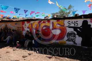 MADERA, CHIHUAHUA, 22SEPTIEMBRE2024.- Habitantes de Madera, familiares de los guerrilleros fallecidos el 23 de septiembre de 1965 en el asalto al Cuartel Militar de Madera y sobrevivientes se dieron cita en el callejón del Barrio Americano para participar en la callejoneada y develación de los murales que conmemorar el 59 aniversario y conmemoración del Asalto al Cuartel Madera en donde fallecieron los guerrilleros: Arturo Gámiz García; Pablo Gómez Ramírez; Emilio Gámiz García; Antonio Scobell Gaytán; Oscar Sandoval Salinas; Miguel Quiñones Pedroza; Rafael Martínez Valdivia y Salomón Gaytán. Estos son algunos d los esfuerzos que la población realiza para preservar la memoria colectiva y de la lucha armada en la región. FOTO: GALO CAÑAS/CUARTOSCURO.COM