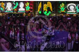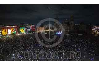 CIUDAD DE MÉXICO, 22SEPTIEMBRE2024.- Cientos de personas acudieron al Zócalo Capitalino donde en punto de las 19:00 horas se proyecto en pantalla gigante el concierto de Juan Gabriel en Bellas Artes. FOTO: ANDREA MURCIA /CUARTOSCURO.COM
