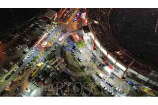 ZACATECAS, ZACATECAS, 23SEPTIEMBRE2024.- Una explosión se presentó en las inmediaciones del Estadio Carlos Vega Villalba, en dónde Julion Álvarez y Alfredo Olivas realizaba su show “Prófugos del Anexo” como parte del cierre de la Feria Nacional de Zacatecas 2024. Faltando unos minutos para la 01:00 hrs se escuchó una fuerte detonación en la zona norte del estadio, sobre la avenida De los Deportes, junto a un camión de la Policía Estatal Preventiva y varias patrullas de Policía Municipal y PE. La explosión provocó lesiones a por lo menos seis personas que se encontraban por el lugar y varios daños materiales en vehículos. En un principio Rodrigo Reyes, secretario de gobierno, informó que se había tratado de acumulación de gas, pero más tarde se pudo corroborar por fuentes en el lugar que detonación había sido provocada por una especie de explosivo muy cerca de vehículos de corporaciones policiacas. Cabe mencionar que durante la cobertura de periodistas y al intentar documentar el incidente, fueron agredidos por elementos policiacos, en específico uno apodado “La Vaquera” adscrito a la Policía Municipal de Zacatecas, quien al intentar documentar lo sucedido sometió a un colega y aventó su equipo de trabajo al suelo. FOTO: ESPECIAL /CUARTOSCURO.COM