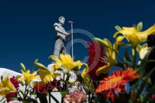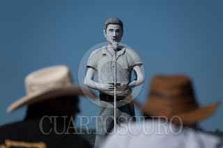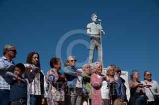 MADERA, CHIHUAHUA, 23SEPTIEMBRE2024.- Familiares de los guerrilleros fallecidos en el asalto al Cuartel de Madera el 23 de septiembre de 1965: Pablo Gómez Martínez, Antonio Scobell Gaytán; Oscar Sandoval Salinas; Rafael Martínez Valdivia, y Salomón Gaytán encabezaron la colocación de la ofrenda floral en el monumento a Arturo Gámiz García en la entrada del municipio de Madera. Con un pase de lista de los caídos y los honores a la bandera por parte de estudiantes de la entidad los ocho guerrilleros FOTO: GALO CAÑAS/CUARTOSCURO.COM