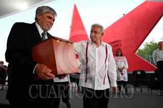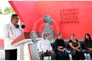 MATAMOROS, TAMAULIPAS, 23SEPTIEMBRE2024.- Américo Villarreal, gobernador de Tamaulipas; durante la ceremonia de repatriación y memoria de Catarino Erasmo Garza Rodríguez, revolucionario mexicano, en Puente Nuevo Internacional de Matamoros. FOTO: PRESIDENCIA/CUARTOSCURO.COM