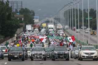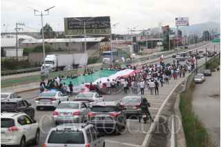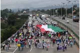 CUERNAVACA, MORELOS, 24SEPTIEMBRE2024.- Trabajadores del Poder Judicial de la Federación realizaron una "peregrinación" desde el punto conocido como Paloma de la Paz, en la entrada norte de la ciudad, ocuparon el carril norte-sur del Paso Exprés y caminaron hasta llegar a las oficinas de los juzgados federales donde mantienen un plantón. Protestan por la aprobación y publicación en Diario Oficial de la Federación de la Reforma al Poder Judicial. Demandan que sea frenada la Reforma Constitucional. La "Peregrinación" duró tres horas, afectando a cientos de automovilistas que transitan por la vía. FOTO: MARGARITO PÉREZ RETANA/CUARTOSCURO.COM