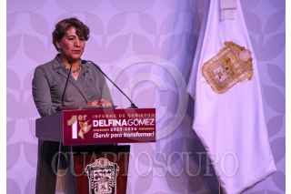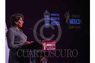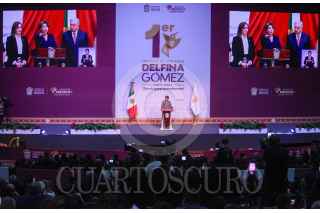 TOLUCA, ESTADO DE MÉXICO, 24SEPTIEMBRE2024.- Delfina Gómez Álvarez, Gobernadora del Estado de México ofreció un mensaje con motivo de su Primer Informe de Gobierno en el Teatro Morelos acompañada por Rosa Isela Rodríguez, Secretaria de Seguridad Pública federal en representación del presiente Andrés Manuel López Obrador, su gabinete, invitados especiales. FOTO: CRISANTA ESPINOSA AGUILAR /CUARTOSCURO.COM