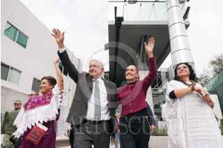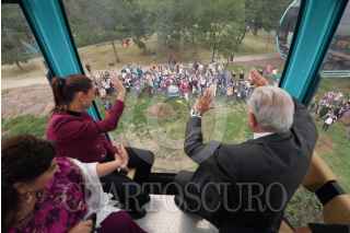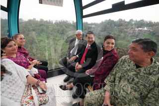 CIUDAD DE MÉXICO, 24SEPTIEMBRE2024.- Clara Brugada, Jefa de Gobierno Electa; Claudia Sheinbaum, Presidenta Electa de México; Andrés Manuel López Obrador, Presidente de México; Marti Batres, Jefe de Gobierno; Daniela Cordero Arena, esposa de Batres, y Luis Cresencio, secretario de la Defensa, encabezaron la puesta en marcha del Cablebus Línea 3, que va del Complejo Cultural de Los Pinos hasta el Pueblo Viejo de Santa Fe. FOTO: PRENSA CLAUDIA SHEINBAUM/CUARTOSCURO.COM