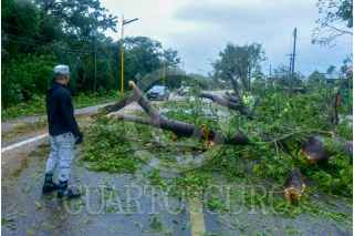 COSTA CHICA, GUERRERO, 25SEPTIEMBRE2024.- Árboles, caídos, socavones, e infraestructura dañada fue el saldo del país del huracán John por costa Chica en Guerrero. Muchas comunidades han quedado sin luz y están a la espera de que les repongan los servicios básicos. FOTO: CARLOS ALBERTO CARBAJAL/CUARTOSCURO.COM
