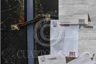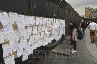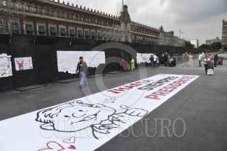 CIUDAD DE MÉXICO, 25SEPTIEMBRE2024.- Integrantes de la organización "Hasta siempre presidente" colocaron cartas de agradecimiento a Andrés Manuel López Obrador, presidente de México, en las vallas que resguardan Palacio Nacional. FOTO: MARIO JASSO/CUARTOSCURO.COM