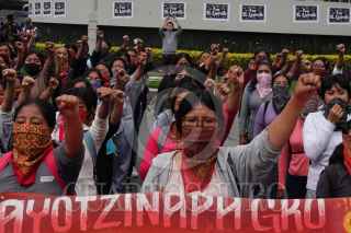 CIUDAD DE MÈXICO, 25SEPTIEMBRE2024.- Madres, padres de los 43 estudiantes desaparecidos en 2014 en Ayotzinapa, Guerrero, acompañados de normalitas de diferentes escuelas rurales exigieron justicia enfrente del Antimonumento de los 43 dentro de las actividades "Sin Tregua Ni Cuartel" por los diez años de su desaparición forzada. FOTO: GRACIELA LÓPEZ/CUARTOSCURO.COM
