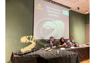 SALTILLO, COAHUILA, 24SEPTIEMBRE2024.- El Museo del Desierto presentó una nueva especie de tiranosaurio encontrado en el sureste de Coahuila, el cual fue nombrado Abocania Aguillonae en honor a su descubridora, la paleontóloga Martha Carolina Aguillón. FOTO: CUARTOSCURO.COM
