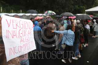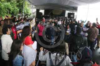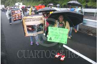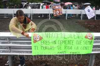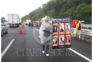 TEPOZTLÁN, MORELOS, 26SEPTIEMBRE2024.- Una trabajadora del Poder Judicial de la Federación coloca una cartulina con un mensaje contra el presidente Andrés Manuel López Obrador en la barrera de protección de la autopista México-Cuernavaca. El mandatario federal tenia programado inaugurar el entronque a Cuautla, acompañado de la Presidenta electa, Claudia Sheinbaum Pardo, sin embargo el evento fue cancelado una hora antes. Unos cincuenta trabajadores del Poder Judicial de la Federación se concentraron en el sitio del evento, donde lanzaron consignas contra el Presidente y la aprobación de la Reforma Constitucional al PJF. FOTO: MARGARITO PÉREZ RETANA/CUARTOSCURO.COM
