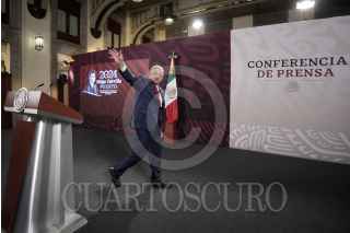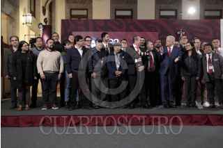 CIUDAD DE MÉXICO, 26SEPTIEMBRE2024.- Andrés Manuel López Obrador, Presidente de México, se despidió del equipo de Comunicación Social de la Presidencia, esto a unos días de culminar su mandato. La despedida se dio al finalizar la conferencia mañanera en el Salón Tesorería del Palacio Nacional. FOTO: PRESIDENCIA/CUARTOSCURO.COM