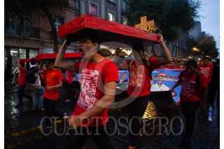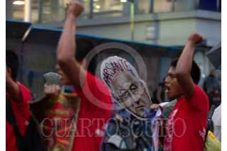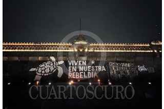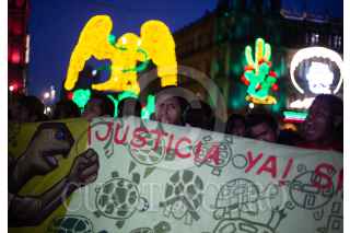 CIUDAD DE MÉXICO, 26SEPTIEMBRE2024.- Familiares, activistas y estudiantes marchan a 10 años de la desaparición forzada de los 43 normalistas de la escuela normal de Ayotzinapa, Guerrero desde el Ángel de la independencia hasta el Zócalo Capitalino. FOTO: ANDREA MURCIA / CUARTOSCURO.COM