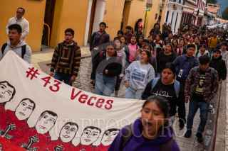 SAN CRISTÓBAL DE LAS CASAS, CHIAPAS, 26SEPTIEMBRE2024.- Estudiantes Normalistas de la Escuela Normal Rural JAcinto Canek, ubicada en el municipio de Zinacantán, marcharon por las principales calles de la ciudad para exigir justicia y la aparición con vida de los 43 estudiantes desaparecidos de la Escuela Normal Rural Isidro Burgos en Ayotzinapa hace ya 10 años. AL cumplirse una década de la violenta noche del 26 de septiembre del 2014 en Iguala, Guerrero, estudiantes normalistas, compañeros, familiares y profesores continúan la lucha para encontrarles. FOTO: ISABEL MATEOS /CUARTOSCURO.COM