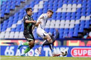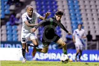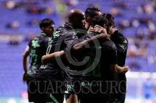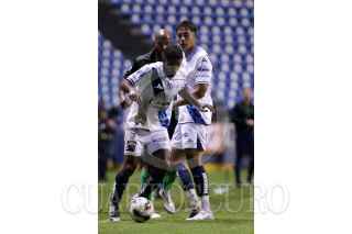 PUEBLA, PUEBLA, 27SEPTIEMBRE2024.- Luis Quiñones y Ralph Orquin durante el partido entre el Club Puebla y Juarez FC, correspondiente a la jornada 10 del torneo Apertura 2024 de la Liga BBVA MX, celebrado en el Estadio Cuauhtémoc. FOTO: MIREYA NOVO/ CUARTOSCURO.COM