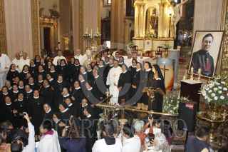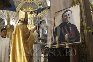 SAN LUIS POTOSI, SAN LUIS POTOSÍ, 29SEPTIEMBRE2024.-.En la Catedral Metropolitana de San Luis Potosí se realizó la misa de Acción de Gracias por la beatificación del padre Moisés Lira Serafín, quien fundó las Misioneras de la Caridad de María Inmaculada, quien fue beatificado este 14 de septiembre en la Basílica de Guadalupe de la Ciudad de México. En esta ceremonia religiosa que fue oficiada por el arzobispo Jorge Alberto Cavazos Arispe asistieron integrantes de la consagración fundada por Cavazos Arispe de varios lugares de la República Mexicana. FOTO: MARCELO PALACIOS/CUARTOSCURO.COM