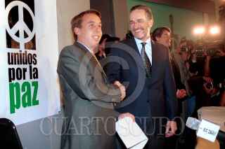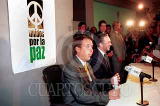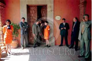 Los dueños de TV Azteca Ricardo Salinas Pliego y de televisa Emilio Azcarraga Jean se reunieron un un salon de la Hacienda de los Morales donde minutos despues hicieron el anuncio del concierto por la Paz en Chiapas. FOTO: Victoria Valtierra/CUARTOSCURO.COM
