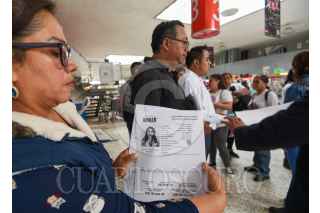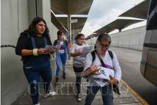TOLUCA, ESTADO DE MÉXICO, 30SEPTIEMBRE2024.- Madres buscadoras la Colectiva Feminista Ehécatl acudieron a pegar fichas de búsqueda de dos menores de edad que desaparecieron de las instalaciones del DIF Estado de México en Toluca. las cuales estaban a cargo de esta institución, en diversos puntos de la Terminal de Autobuses de Toluca y entregando en mano de los pasajeros fichas de búsqueda para dar pronto con su paradero. FOTO: CRISANTA ESPINOSA AGUILAR /CUARTOSCURO.COM
