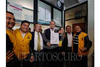 TOLUCA, ESTADO DE MÉXICO, 30SEPTIEMBRE2024.- Amin Moreno Lojero, Presidente del PRD, acompañado por los diputados locales Araceli Casasola, Omar Ortega, Javier Rivera, representante ante el IEEM, acudieron ante la oficialía de partes a entregar su solicitud de registro del Partido de la Revolución Democrática del Estado de México como partido local. FOTO: CRISANTA ESPINOSA AGUILAR /CUARTOSCURO.COM