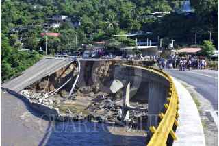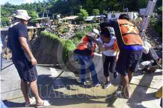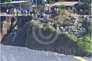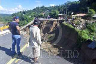 ACAPULCO, GUERRERO, 30SEPTIEMBRE2024.- Pobladores de la zona rural de Acapulco, quedaron incomunicados al colapsar el puente de la carretera federal México - Acapulco, en la comunidad del Km 21, debido a las fuertes lluvia lluvias que ocasionó el huracán John. FOTO: CARLOS ALBERTO CARBAJAL/CUARTOSCURO.COM