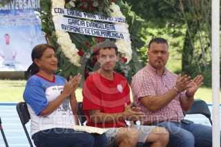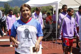 CHILPANCINGO, GUERRERO, 30SEPTIEMBRE2024.- El pasado 26 de septiembre del 2014, los jugadores del Club 'Avispones' de Chilpancingo, sufrieron el ataque de hombres armados que los confundieron con normalistas de Ayotzinapa, asesinando a dos miembros del equipo, además de herir a más de 15 jugadores. Este 30 de septiembre, la mamá del jugador de 15 años David Josué 'Zurdito' García Evangelista, junto a familiares de Víctor Manuel 'Barcel' Lugo Ortiz, jugadores del club, ex jugadores y familiares de víctimas del atentado, conmemoraron los 10 años de estos lamentables hechos que dejaran a 43 estudiantes de la Escuela Normal Rural 'Raúl Isidro Burgos' de Ayotzinapa, además de 6 personas sin vida. Durante su discurso, la Señora Roberta García Evangelista, indicó que a 10 años de los hechos, nunca fue esclarecido el ataque hacia el equipo, ya que lo único que les dijeron es que "fueron confundidos", a pesar de que el camión en el que viajaban los jugadores es más pequeño que los comerciales y los rótulos qué traía eran de la empresa que se los rentaba, además de contar con una lona al frente, para una mayor identificación. FOTO: DASSAEV TÉLLEZ ADAME/CUARTOSCURO.COM