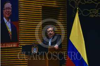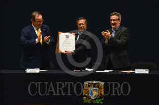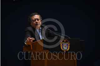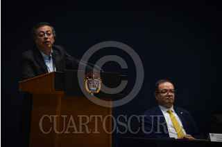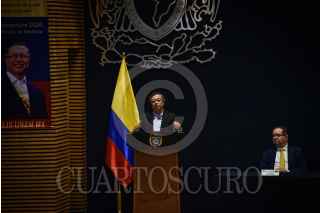 CIUDAD DE MÉXICO, 30SEPTIEMBRE2024.- El presidente de la República de Colombia, Gustavo Petro, dio una conferencia en el Antiguo Palacio de Medicina. En el evento estuvieron también Leonardo Lomeli, y el investigador John Ackerman. FOTO: PEDRO ANZA /CUARTOSCURO.COM