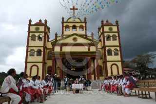 LAZARO CARDENAS CHILIL, CHIAPAS, 30SEPTIEMBRE2024.- Pobladores y autoridades tradicionales tsotsiles de la región llevaron a cabo la fiesta en honor a San Miguel, el cual para las comunidades representa el inicio de las cosechas y el dia en que sus muertos comienzan el viaje para su visita el Día de Todos Santos o Día de Muertos. FOTO: ISABEL MATEOS /CUARTOSCURO.COM