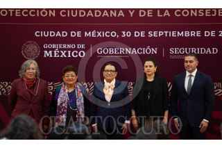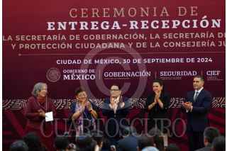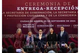 CIUDAD DE MÉXICO, 30SEPTIEMBRE2024.- María Estela Ríos González, Rosa Icela Rodríguez Velázquez Luisa María Alcalde Luján, Omar García Harfuch y Ernestina Godoy Ramos durante la ceremonia oficial de entrega-recepción de la Secretaría de Gobernación, la Secretaría de Seguridad y protección Ciudadana (SSPC),así como la Consejería Jurídica de Presidencia de la República. FOTO: ANDREA MURCIA /CUARTOSCURO.COM