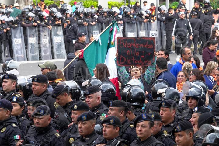 CIUDAD DE MÉXICO, 01OCTUBRE2024.- Trabajadores del Poder Judicial están encapsulados y algunos al margen de las rejas que fueron colocados por la Secretaría de Seguridad Ciudadana para resguardar las inmediaciones de la Cámara de Diputados en donde más tarde tomara protesta Claudia Sheinbaum como Presidenta Constitucional de México. Los inconformes se oponen a la aplicación de la Ley al Poder Judicial aprobada hace unos días en la Camara de Diputados y promulgada ya por el Ejecutivo, Andrés Manuel López Obrador. FOTO: MOISÉS PABLO/CUARTOSCURO.COM