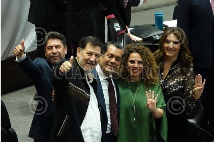 CIUDAD DE MÉXICO,01OCTUBRE2024.- Gerardo Fernández Noroña, presidente de la Cámara de Senadores, y Sergio Gutiérrez Luna, presidente de la mesa directiva en la Cámara de Diputados, durante la entrega de la banda presidencial de Claudia Sheinbaum en la Cámara de Diputados. FOTO: GRACIELA LÓPEZ/CUARTOSCURO.COM
