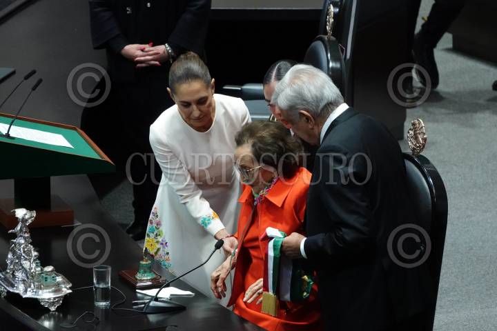 CIUDAD DE MÉXICO, 01OCTUBRE2024.-Claudia Sheinbaum Pardo rindió protesta ante el pleno de la Cámara de Diputados como la nueva presidenta de México. La banda presidencial le fue entregada de manos de la presidenta de la Cámara, Ifigenia Martínez y del presidente saliente Andrés Manuel López Obrador. FOTO: GALO CAÑAS/CUARTOSCURO.COM