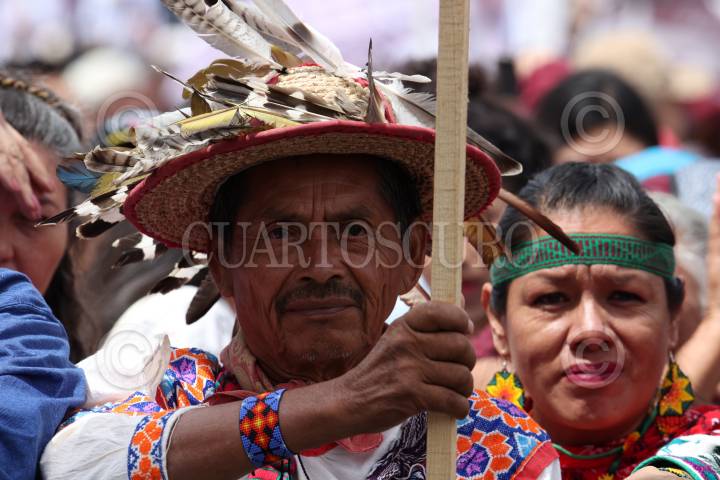 CIUDAD DE MÉXICO, 01OCTUBRE2024. Asistentes del estado de Nayarit previo a la ceremonia de los pueblos indígenas y el pueblo afromexicano para la entrega del Bastón de Mando, en la plancha del zócalo de la Ciudad de México. FOTO: EDGAR NEGRETE LIRA/CUARTOSCURO.COM