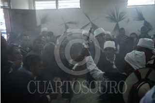 SAN JUAN CHAMULA, CHIAPAS, 01OCTUBRE2024.- En un acto ceremonial de gran relevancia para la comunidad de San Juan Chamula, Pascual Sánchez Gómez, conocido como "XakitaMol", fue investido con el bastón de mando por parte de las autoridades tradicionales de los tres barrios fundacionales: San Juan, San Pedro y San Sebastián. Este acto simbólico, lleno de misticismo y tradición, marca el inicio de un nuevo ciclo en el liderazgo local, bajo los usos y costumbres ancestrales que rigen en la región. Sánchez Gómez, quien ha sido un luchador social reconocido, se convierte en el primer presidente municipal de izquierda en la historia de San Juan Chamula. FOTO: ISABEL MATEOS /CUARTOSCURO.COM