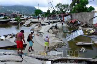 ACAPULCO, GUERRERO, 01OCTUBRE2024.- Restaurantes de la playa Revolcadero en la Zona Diamante de Acapulco, fueron arrasados por las corrientes ocasionadas inundaciones que causó la lluvia que durante varios días afecto al puerto por el huracán John. FOTO: CARLOS ALBERTO CARBAJAL/CUARTOSCURO.COM