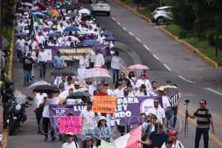 XALAPA, VERACRUZ, 01OCTUBRE2024.- Trabajadores del PJF marcharon del Teatro del Estado a la plaza Lerdo de Xalapa para manifestar su inconformidad con la Reforma Judicial. FOTO: YERANIA ROLÓN/CUARTOSCURO.COM