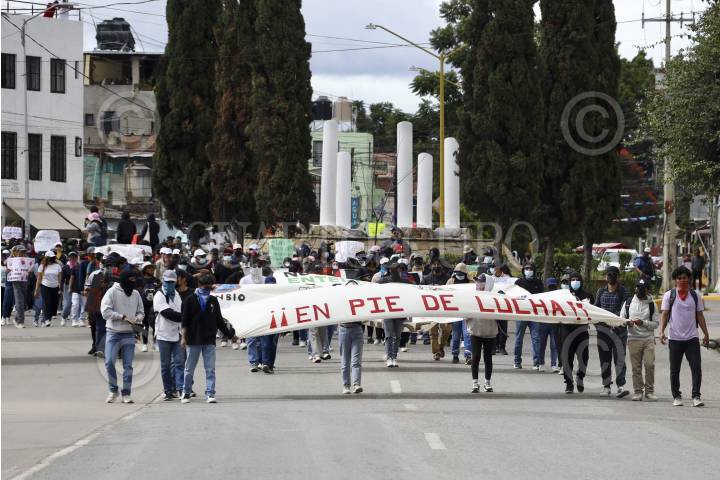 OAXACA, OAXACA, 02OCTUBRE2024.- Al conmemorarse 56 años de la Matanza de Tlatelolco, estudiantes normalistas de Oaxaca marcharon en la capital del estado para recordar los hechos ocurridos el 2 de octubre de 1968 y exigir alto a la represión estudiantil. Los estudiantes marcharon de forma pacífica mientras gritaron consignas y mostraron pancartas. FOTO: CAROLINA JIMÉNEZ/CUARTOSCURO.COM
