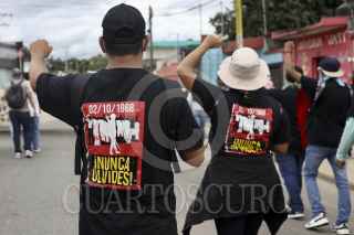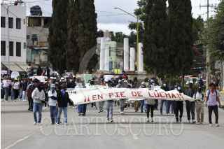 OAXACA, OAXACA, 02OCTUBRE2024.- Al conmemorarse 56 años de la Matanza de Tlatelolco, estudiantes normalistas de Oaxaca marcharon en la capital del estado para recordar los hechos ocurridos el 2 de octubre de 1968 y exigir alto a la represión estudiantil. Los estudiantes marcharon de forma pacífica mientras gritaron consignas y mostraron pancartas. FOTO: CAROLINA JIMÉNEZ/CUARTOSCURO.COM