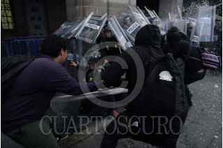 CIUDAD DE MÉXICO, 01OCTUBRE2024.- Integrantes del Bloque Negro se enfrentaron con elementos de la Policía enfrente del Palacio de Ayuntamiento durante la marcha conmemorativa del 2 de octubre a 56 años de la matanza de los estudiantes en la Plaza de las Tres Culturas. FOTO: GRACIELA LÓPEZ/CUARTOSCURO.COM