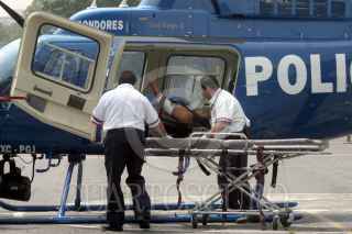 MEXICO, D.F., 06SEPTIEMBRE2007.-Fue transladado en helicoptero un policia auxiliar que resulto gravemente lesionado al cortarse con un vidrio, recibio atencion medica en un hospital privado. FOTO:PEDRO MARRUFO/CUARTOSCURO.COM