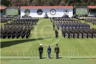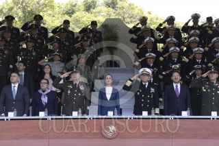 CIUDAD DE MÉXICO, 03OCTUBRE2024.- Claudia Sheinbaum, presidenta de México, acompañada del secretario de Defensa, Ricardo Trevilla Trejo y el de Marina, Raymundo Morales Ángeles, encabezaron la Ceremonia de Salutación en Campo Marte. FOTO: PRESIDENCIA/ CUARTOSCURO.COM